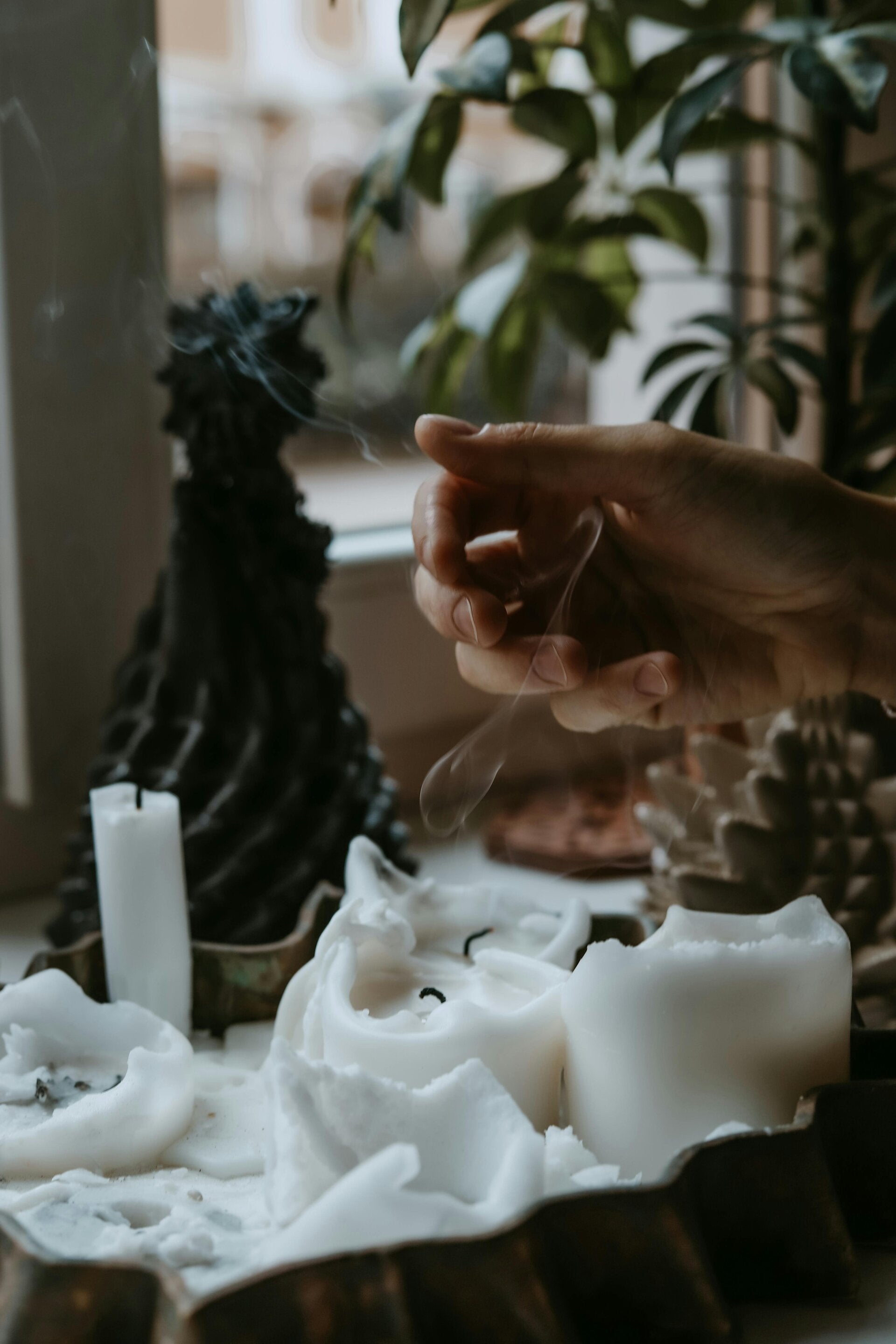 Use a candle snuffer or gently dip the wick into the wax and straighten it to avoid smoke and preserve scent.